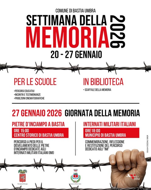 Il Comune di Bastia Umbra dedica una settimana di iniziative alla memoria della Shoah e degli Internati Militari Italiani (IMI), uomini che dopo l'8 settembre 1943 rifiutarono di aderire al nazifascismo e per questo furono deportati nei lager, privati di ogni diritto e costretti ai lavori forzati.