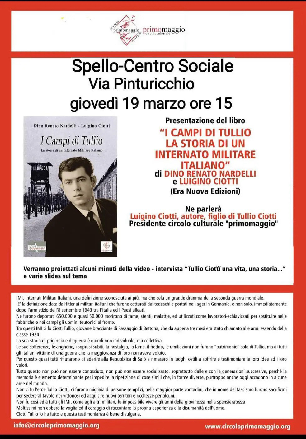 Come circolo culturale “primomaggio”, continuiamo il nostro cammino. Per chi vuole fare un buon regalo, a modico prezzo, potete sempre richiederci due nostre pubblicazioni: Noi siamo la nostra storia e I Campi di Tullio. La storia di un Internato Militare Italiano.